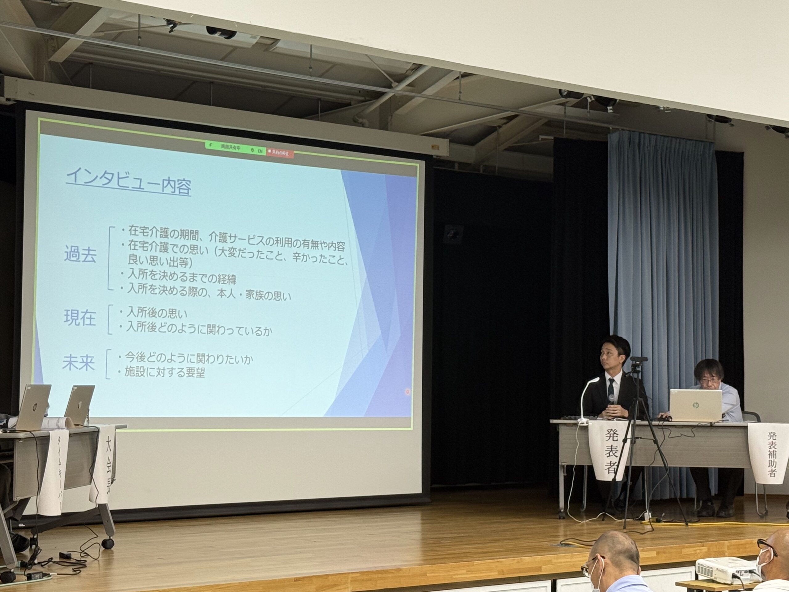 今回ご紹介するのは、『高齢者施設における入所者家族に対する支援ニーズ調査 ~施設ソーシャルワーカーに求められること~』 を発表した、ソーシャルワーカー部門のお二人です。