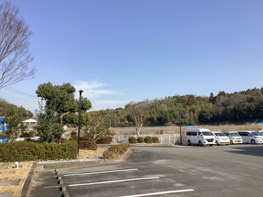 施設の周囲には駐車場があり、そこからは曽井の山を眺めることができます。