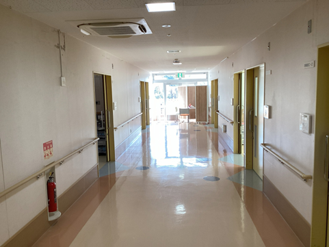 エレベーターで上階に上がると、こちらが施設の廊下です。