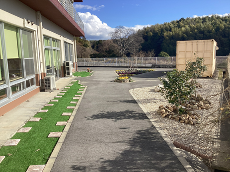 季節の花を眺めながら、散歩や屋外での歩行練習を行うことができます。