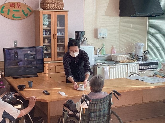 喫茶に従事している川島さんは話しやすく聞き上手で、私が前を通りかかると、ご利用者様たちと一緒にとても良い雰囲気になっています。