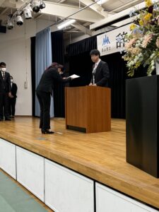 理事長の挨拶では、「みなさんはこれからの青山里会を担う存在です。介護は生活を支える仕事ですから、思いやりや温かさが欠かせません。これからみなさんが経験することはみなさんの成長につながります。青山里会が求める職員像は“Change and Challenge”。挑戦を続け失敗を恐れず前に進んでいってください」とメッセージが送られました。