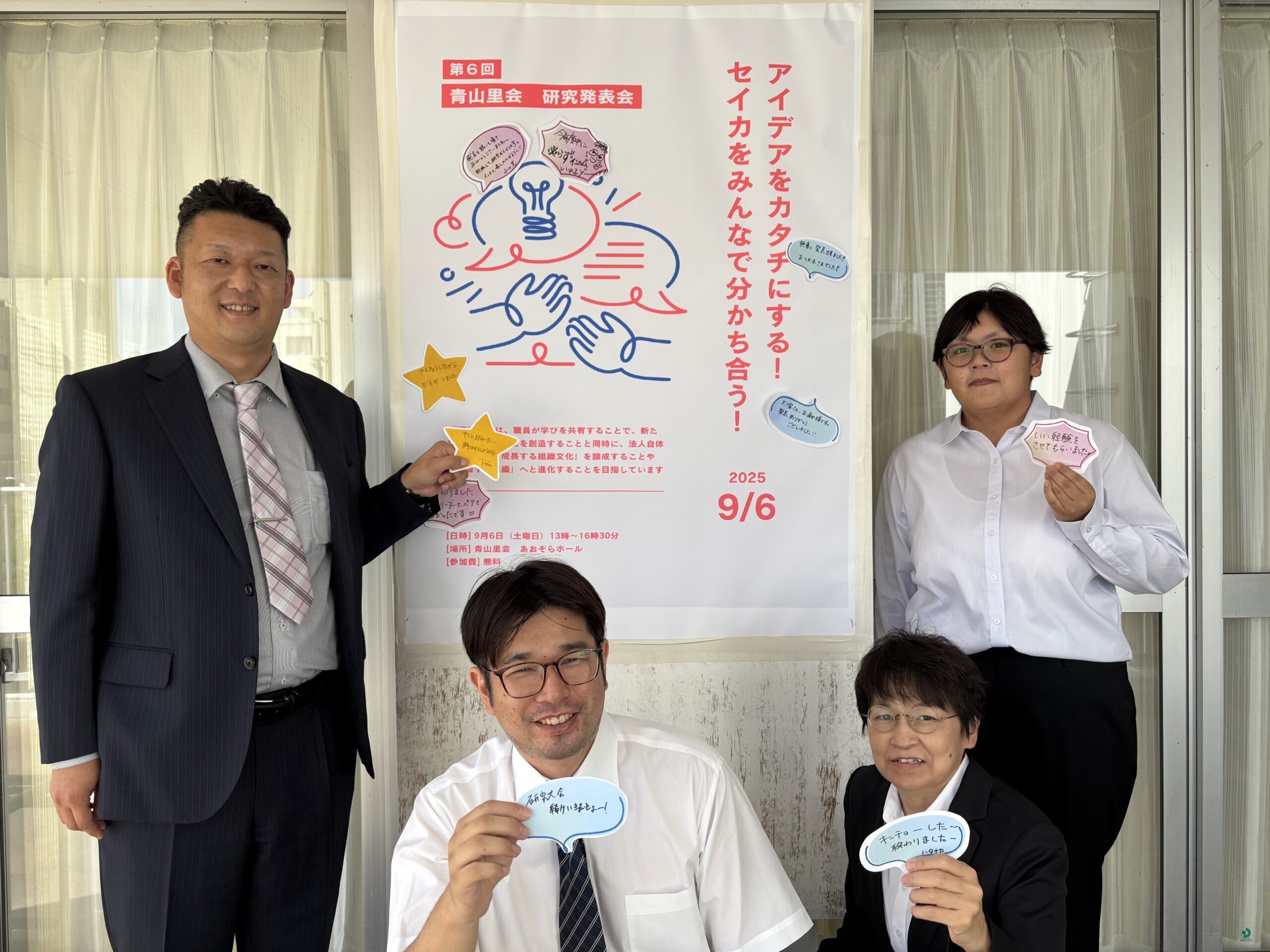 発表者のみなさん、お疲れ様でした😊 いつも社会福祉法人青山里会のブログをご覧の皆さん、そしてはじめましての皆さん、こんにちは平山です😆 今回は、前回ブログの続報で、令和7年9月6日(土)青山里会あおぞらホールにて、『第6回青山里会研究発表会...