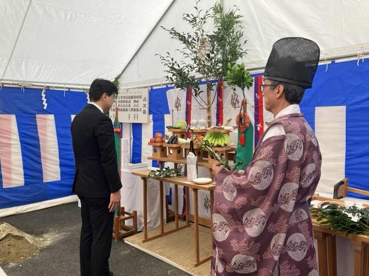 地鎮祭にて、理事長が工事の安全と建物の完成を祈願している様子です。 みなさまこんにちは!山田です🙋♀️ 昨日、小山田施設群内に建設予定の職員厚生棟の地鎮祭が執り行われましたので、その様子をご紹介します✨ 当日は関係者が集まり、これから始ま...